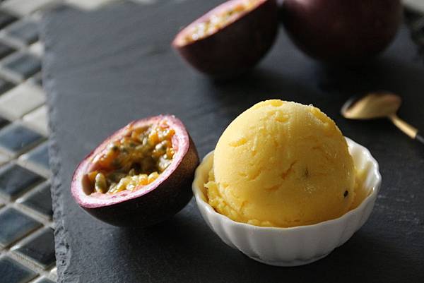 義式冰淇淋中的雪酪(水果類口味不含乳脂的冰淇淋)
